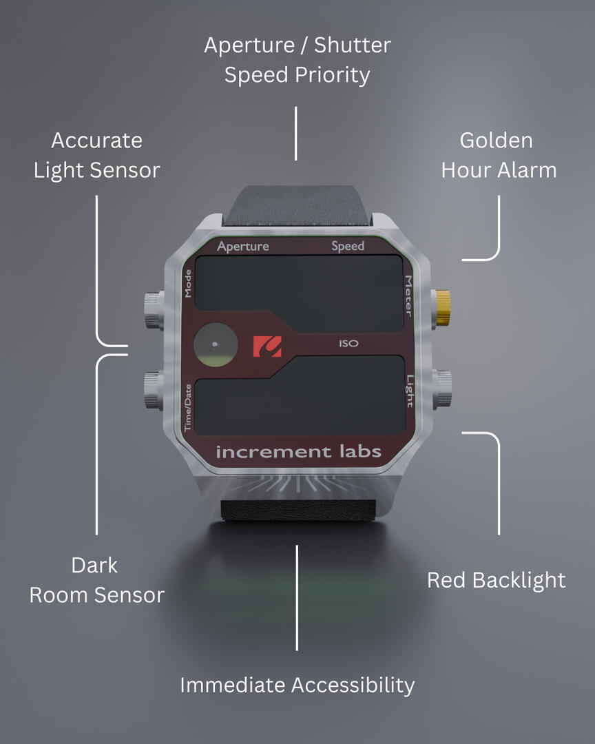 The first digital watch for photographers. Delivering instant, accurate readings.